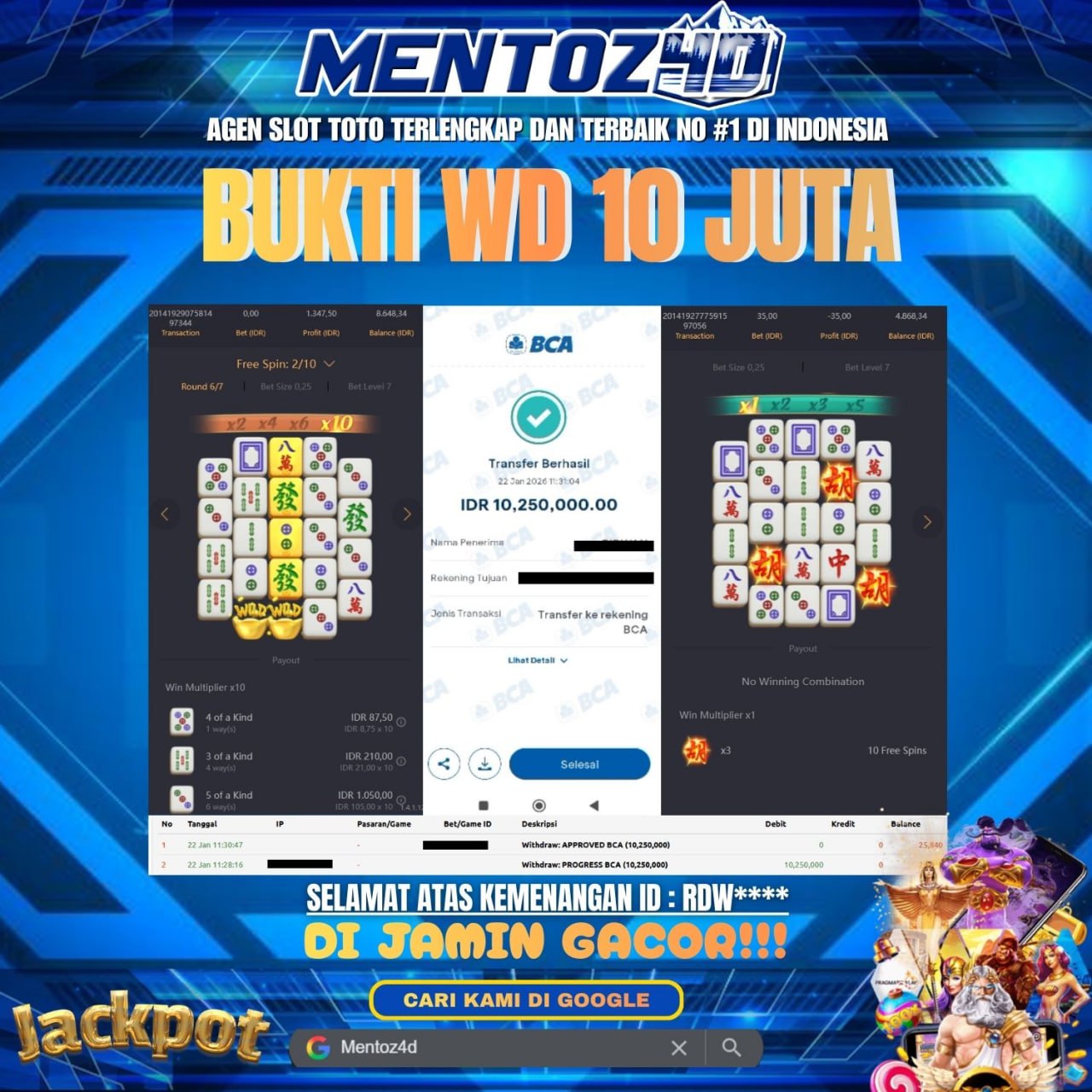 JACKPOT SLOT MAHJONG WAYS 10,2 JT DI MENTOZ4D!