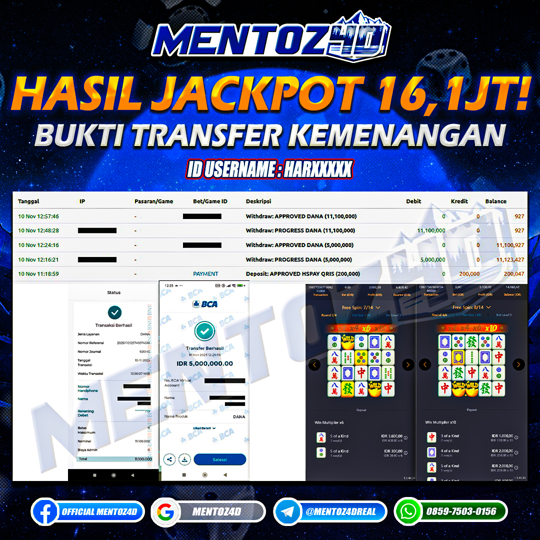 Masih belum yakin dengan MENTOZ4D? Silahkan lihat bukti penghasilan dari member setia kami, di website  MENTOZ4D semua penghasilan akan dibayarkan kepada anda semua. MENTOZ4D adalah situs game online terpercaya di Indonesia dengan jutaan member aktif bulanan. Yuk, dapatkan puluhan hingga ratusan juta di situs  MENTOZ4D.