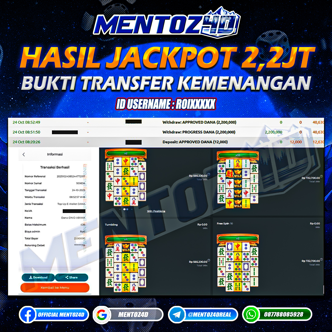 Masih belum yakin dengan MENTOZ4D? Silahkan lihat bukti penghasilan dari member setia kami, di website MENTOZ4D semua penghasilan akan dibayarkan kepada anda semua. MENTOZ4D adalah situs game online terpercaya di Indonesia dengan jutaan member aktif bulanan. Yuk, dapatkan puluhan hingga ratusan juta di situs MENTOZ4D.