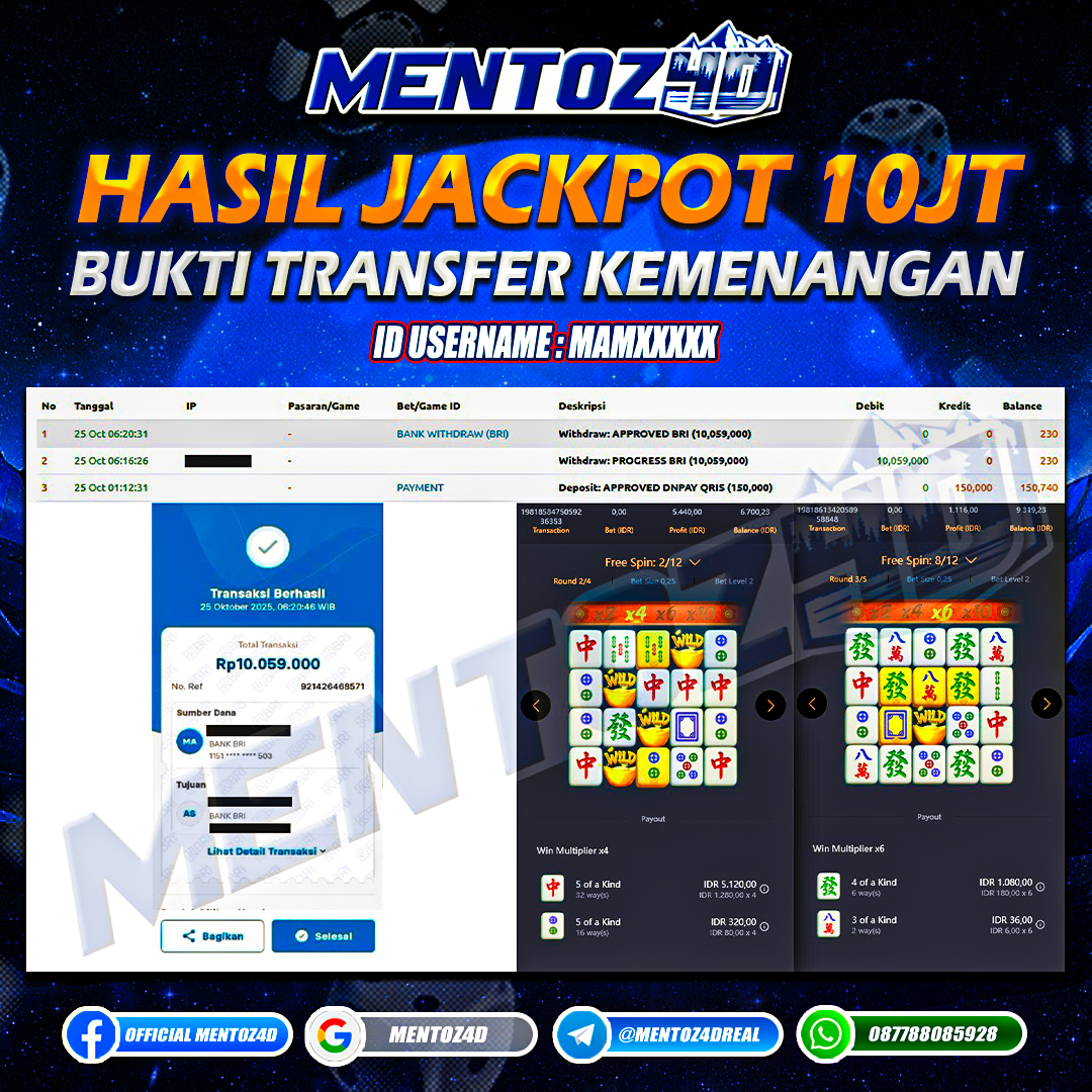 Masih belum yakin dengan MENTOZ4D? Silahkan lihat bukti penghasilan dari member setia kami, di website MENTOZ4D semua penghasilan akan dibayarkan kepada anda semua. MENTOZ4D adalah situs game online terpercaya di Indonesia dengan jutaan member aktif bulanan. Yuk, dapatkan puluhan hingga ratusan juta di situs MENTOZ4D.