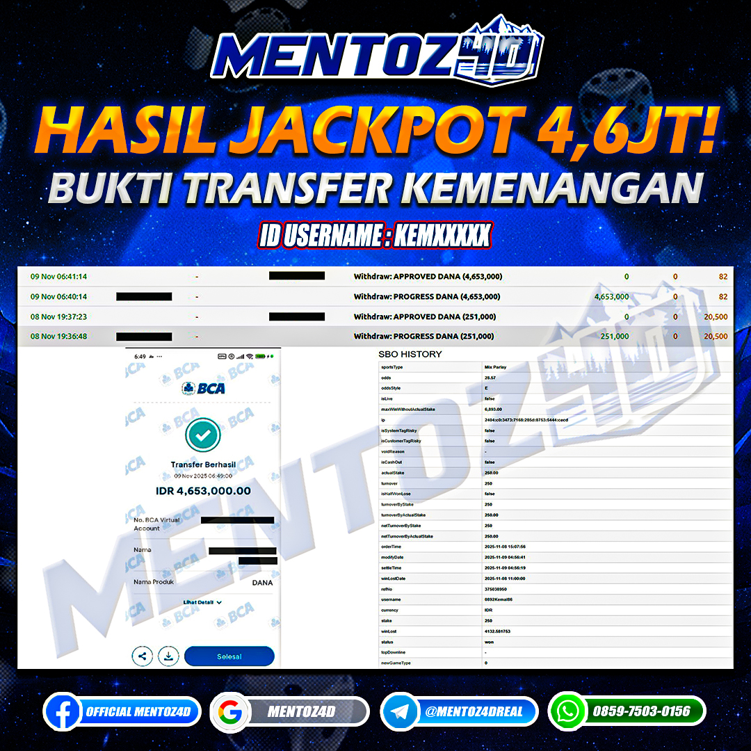 Masih belum yakin dengan MENTOZ4D? Silahkan lihat bukti penghasilan dari member setia kami, di website MENTOZ4D semua penghasilan akan dibayarkan kepada anda semua. MENTOZ4D adalah situs game online terpercaya di Indonesia dengan jutaan member aktif bulanan. Yuk, dapatkan puluhan hingga ratusan juta di situs MENTOZ4D.